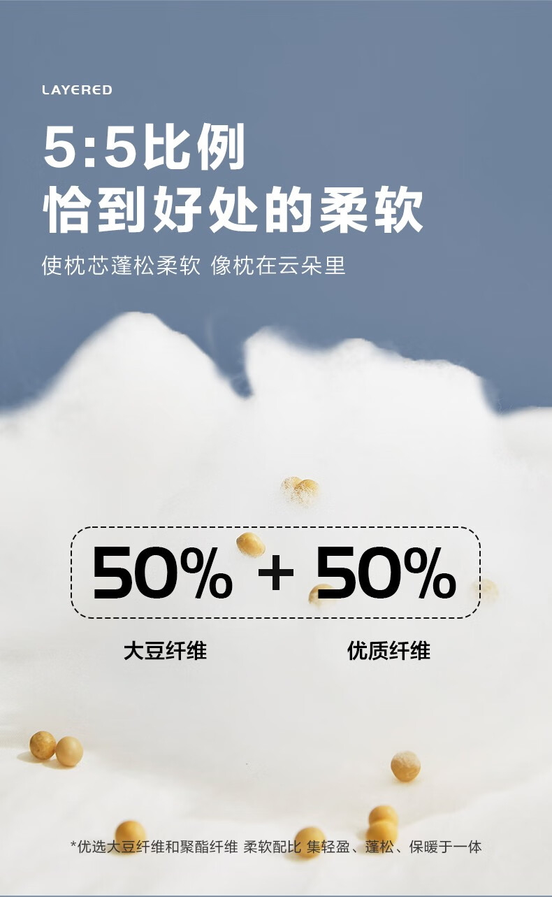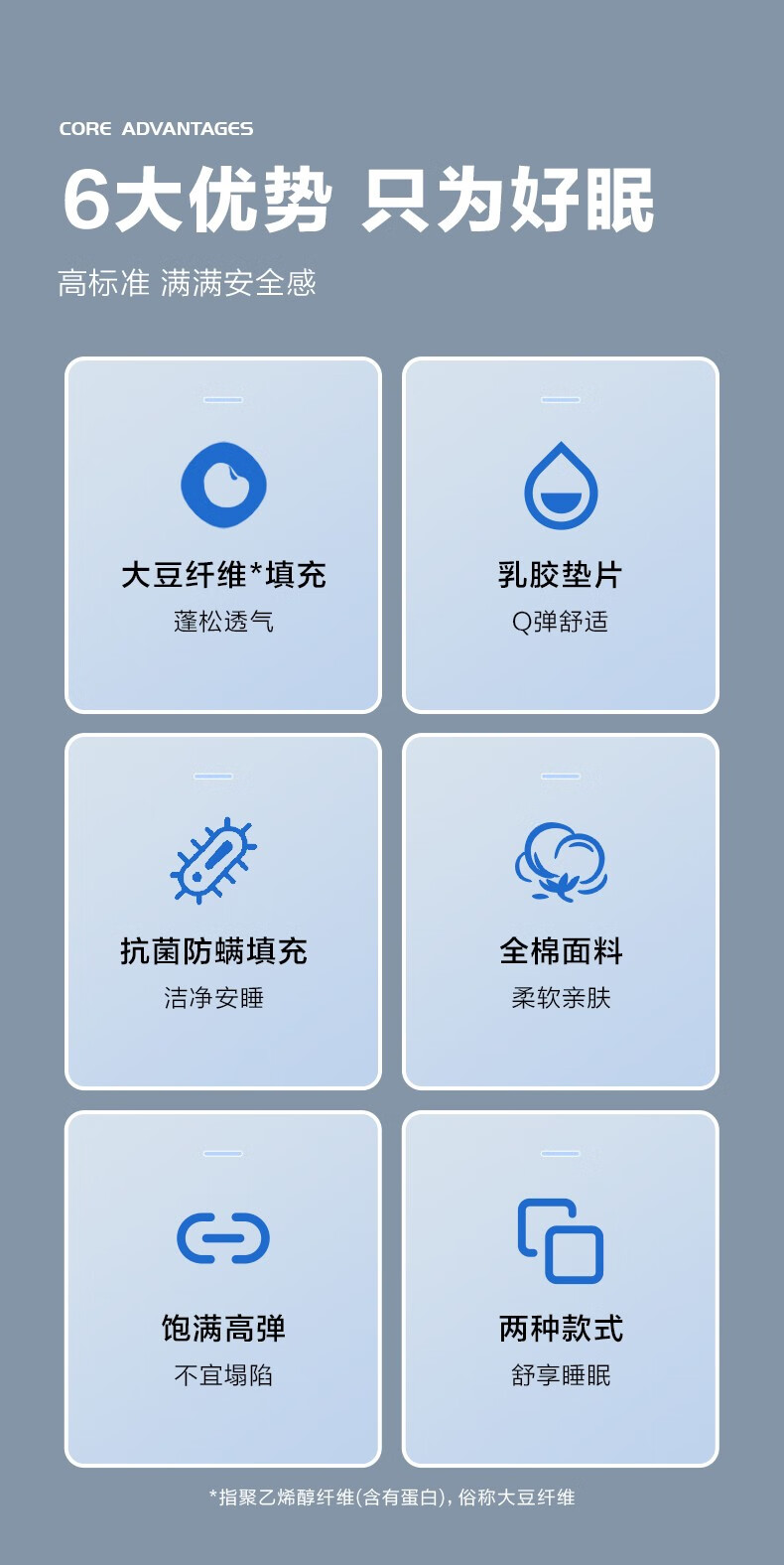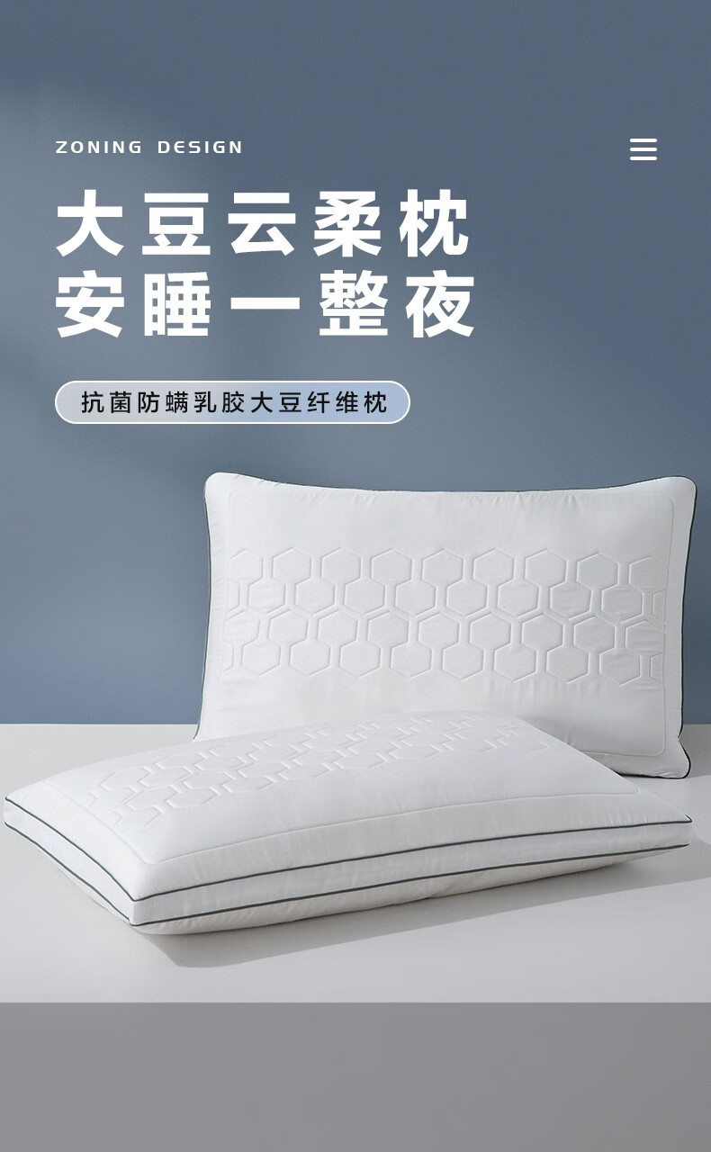 商品名称:罗莱家纺 枕头枕芯大豆纤维枕头天然乳胶立高枕 60支全棉抗菌-立高
