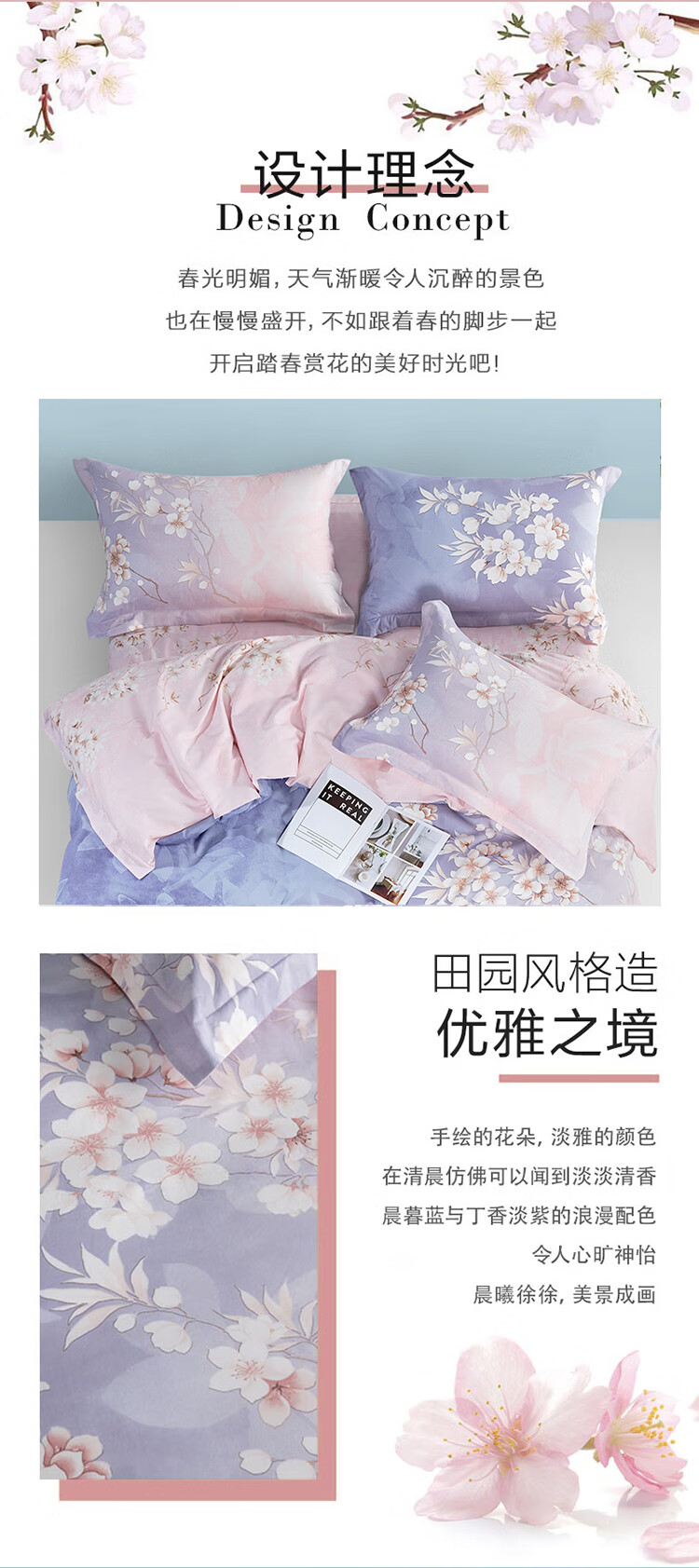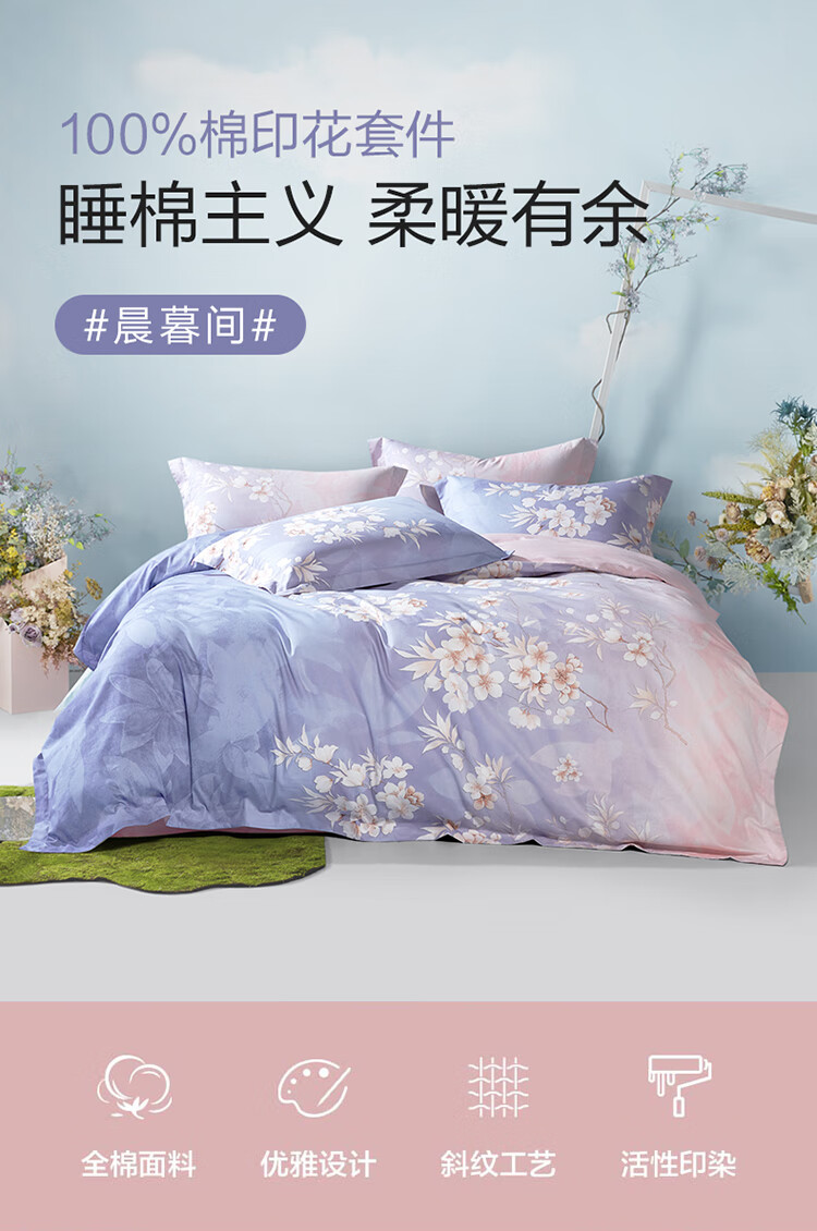 罗莱家纺纯棉床上四件套床上用品套件被单被罩 1.8米床220*250