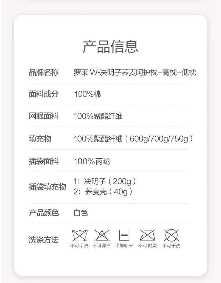 商品名称:罗莱家纺枕头枕芯决明子荞麦枕头芯 呵护枕 草本枕 全棉面料 46*72cm