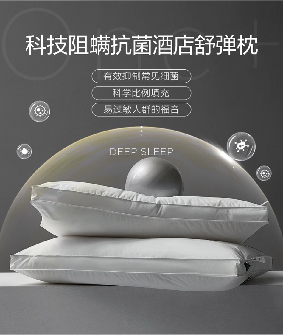 罗莱家纺 五星级酒店枕头阻螨抗菌可水洗枕芯单人睡眠枕