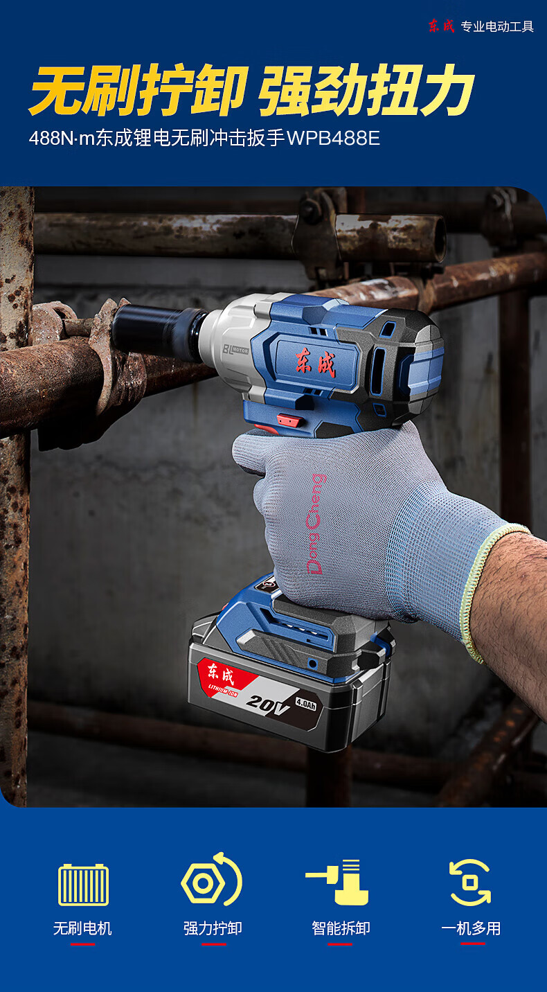 东成20V锂电无刷电动扳手大力矩WPB488E充电式冲击扳手套筒风炮