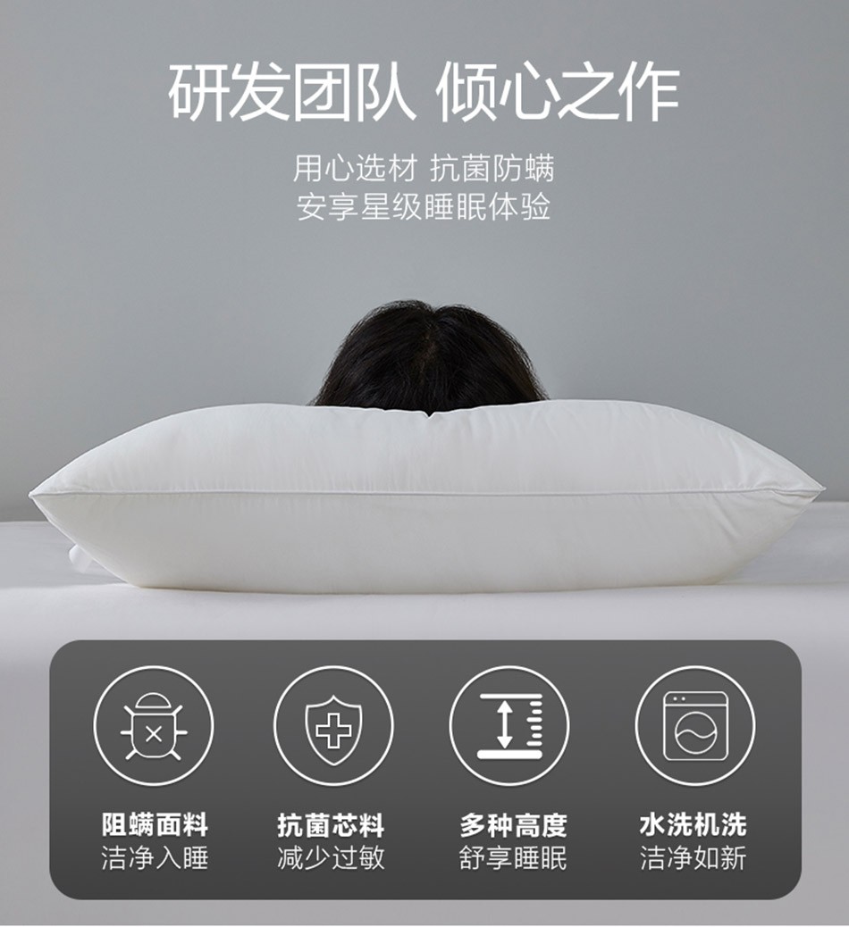 罗莱家纺 五星级酒店枕头阻螨抗菌可水洗枕芯单人睡眠枕